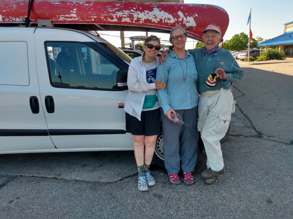 Finally we are hitting the water! Technically we are launching in South Dakota. We are at the south end of Lake Traverse, which separates SD from MN. We are all so excited to be back on the water again.I am not at all worried about strength or endurance issues, although there is some trepidation among the troops. It’s just that we have had 6 years off, so our self-confidence may be wobbly.