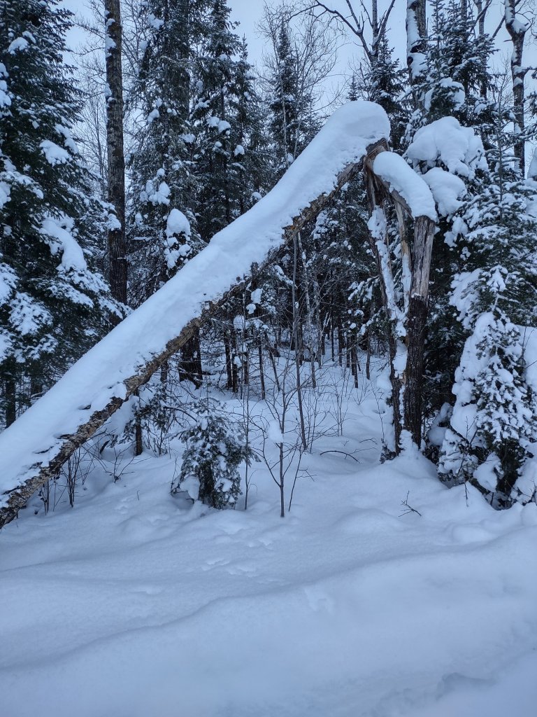 This week I went up to Elbow Lake where our cabin is. The snow was deep, fresh, clean, white, fluffy, and undisturbed. It stood about 18 inches tall on every horizontal surface. I went for a walk in the deafening silence and realized that 50 years ago this month I was on my first foray into the Boundary Waters. I was an Outward Bound student and spent the whole month of January 1973 traversing the frozen lakes and rivers on skis. As is the custom at Outward Bound, I spent 3 days in the forest by myself. I remember distinctly (and my memories are backed up by my journal) sitting at the mouth of my little snow cave I dug, feeding twigs to my fire, and thinking that when I grew up I wanted to be a hermit. I never would have imagined that exactly 50 years later I would be visiting my very own hermitage only 20 miles away from that snow cave. Sometimes we think that our lives twist and turn and wander every which way, but here is mine, completing a circle: same place, same yearning for solitude. But instead of being a “someday” dream, it is reality. What great fortune!