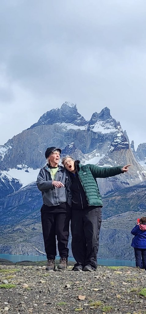 I am in Patagonia, which is the southernmost area of South America. It is just turning to spring now. Although it is chilly it is very beautiful. The mountains are spectacular. We are in the town of Puerto Natales right now. I am with five friends. We have done some hiking, some eating, some boating, some caving, and lots of oohing and aahing. The animal in the fourth picture is called a guanaco and is related to a camel.