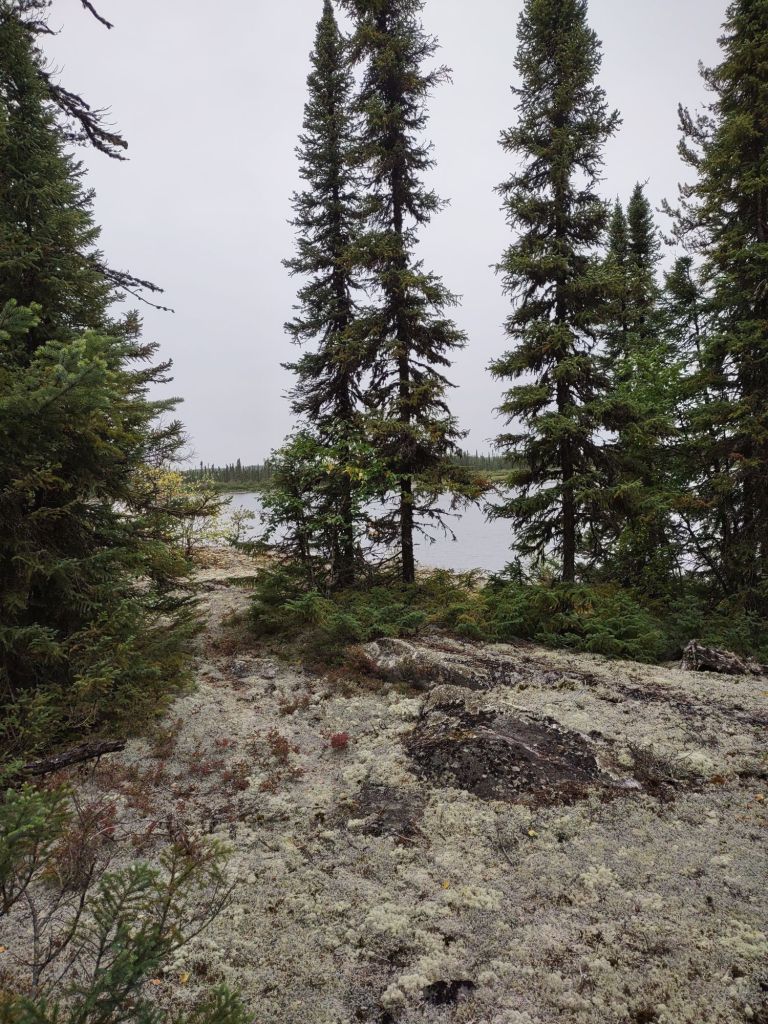 The trip I lined up was different from any other canoe trip I’ve taken in that I was not in charge. That turned out not to be a problem at all. My two guides were extremely competent and well-organized, and I felt very safe with them. There were eight people in our group, including the guides: four men and four women, ranging in age from 31 to 75, in four canoes. Because of the wildfires, we had to change the original route slightly. That meant we had to fly into 50-mile-long Knee Lake and land at a private airstrip used primarily by rich Americans to access a swanky fishing camp. The flight itself was a little harrowing because of the wildfire smoke in the air. Half of the flight we were unable to see the ground. Because it was a visual flight rules only plane, meaning no radar, the visual part was hit-and-miss. After both our flights arrived at the lodge, paddled for about an hour before making camp.