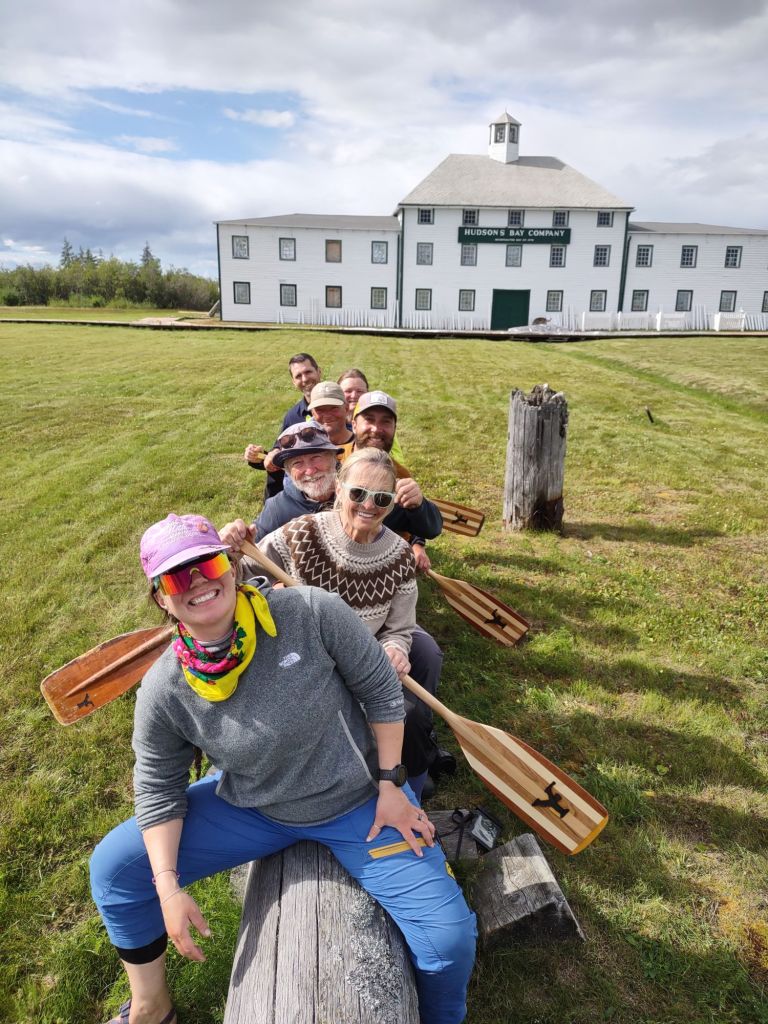 Day 11 — I can’t even begin to describe this day. It rained hard all day long. The wind was coming in from the bay at 97 km per hour, resulting in big waves for us to paddle through. We had timed our arrival at the estuary to coincide with the high tide so that the receding water could help us with our paddling. So we had the current and the tides going our way, but the wind and the waves going against us. Once again we were all freezing but there was no way to stop and get out of the canoes because of the threat of polar bears. We got kind of strung out along the river even though our intentions had been to stick close together. The estuary seemed to go on forever, probably because we were paddling twice as many strokes to cover half the distance. Some seals poked their heads up to look at us as we slowly passed. By the time the York Factory building appeared on the cliff, we were all nearly hypothermic. Even unloading the canoes was problematic because of the waves and the wind and the bouncing dock. Like a vision, a bunch of angels in the guise of young men appeared to help us carry all our gear and canoes up the 60 steps to safety. They ushered us into a warm building where we would spend the night, brought us water and blankets, and invited us to their building (The House) for supper. We were all so exhausted and so cold that we could hardly appreciate the kindness and generosity they bestowed upon us: hamburgers, pork chops, fried potatoes, fresh fruit, cookies, hot coffee and tea, and a dryer to put all our wet clothes in. They even gave us dry sweatpants to wear while our clothes dried. It was at that point that we learned we weren’t the only people expected that stormy night. A solo hiker was also supposed to show up at York Factory that night. Stay tuned for the next installment telling about him.